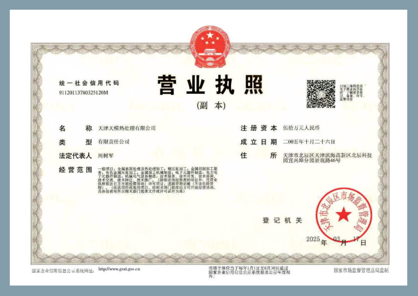 始建于1958年,有史以来天津市热处理行业首批理事单位,2005年由国有转为民营,现任天津市热处理行业协会、学会副理事长单位,天津市高新技术企业,中国热处理行业协会规范企业,中国商业热处理百强企业。